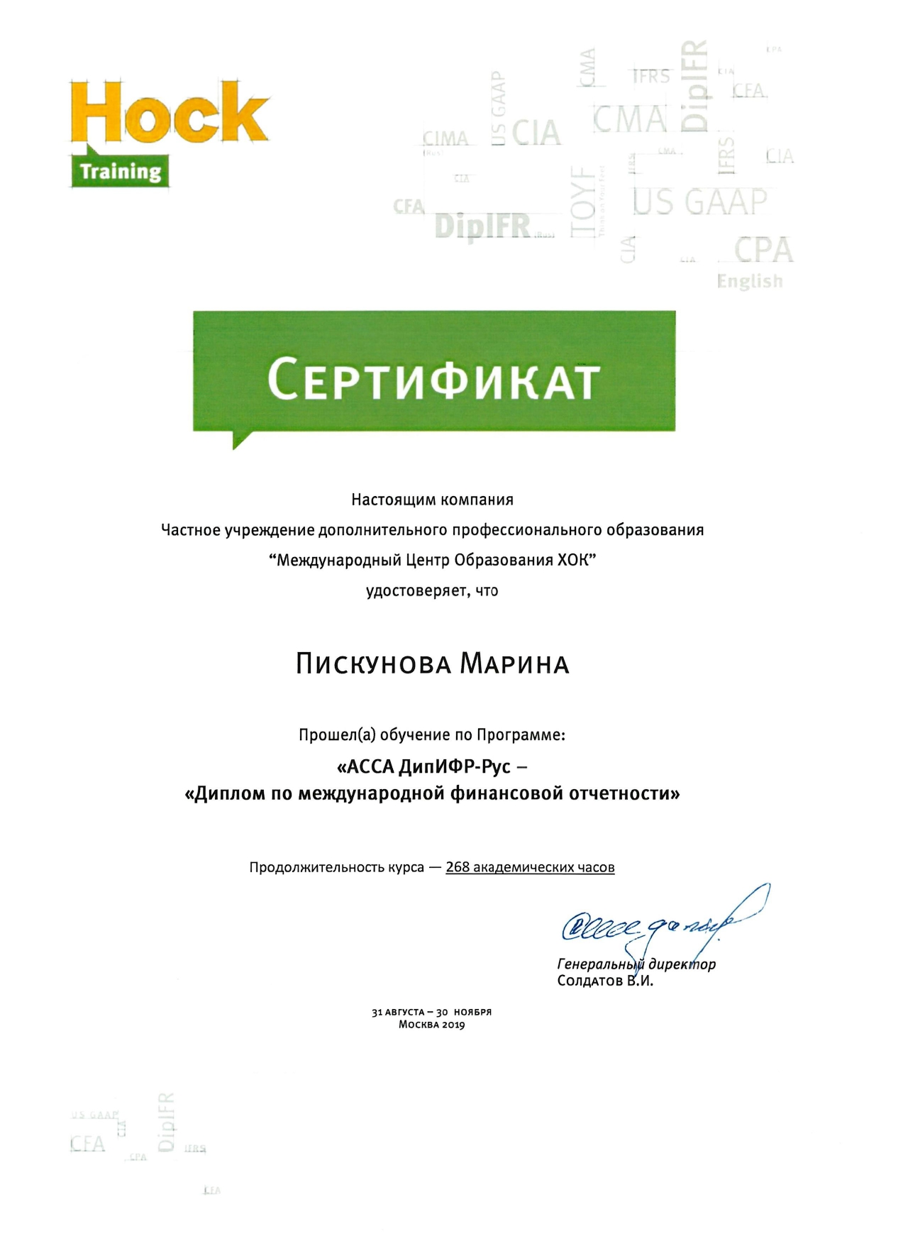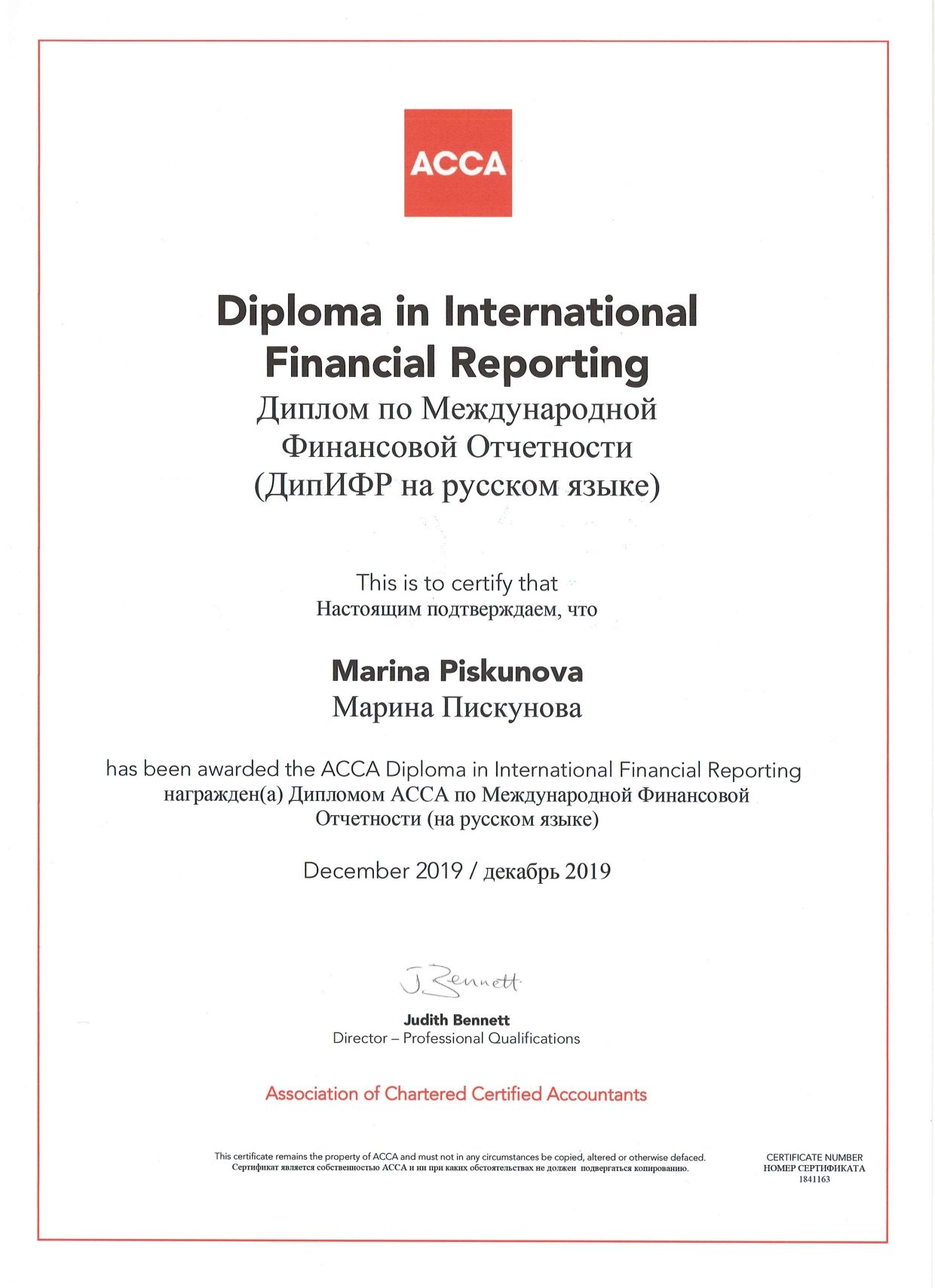 Основатель центра бухгалтерского сопровождения «Алмаз» — Пискунова Марина Валерьевна — эксперт, чья квалификация подтверждена не только годами, но и самыми престижными дипломами в профессии.